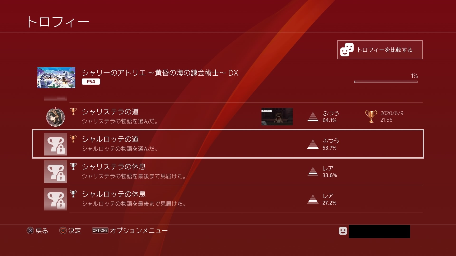 実際どれくらいの割合で主人公が選ばれているのか確認するためトロフィーの取得率を見てみると、やはりシャリステラの方が10%高いという結果が