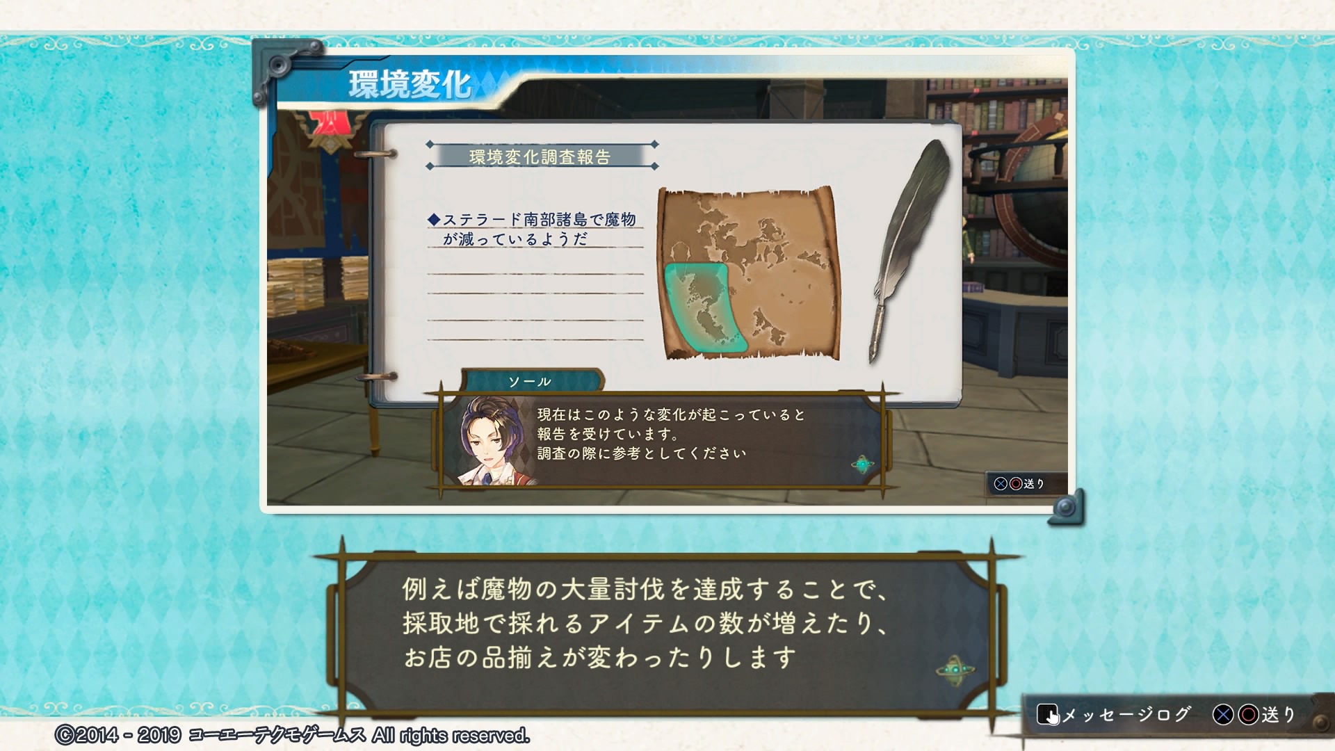 そして街に戻るとHP、MPが全回復するだけでなくアイテムの回数も補充されるため、採取地を1箇所探索するたびに街に戻るのを繰り返すのが一番安全な攻略法になってしまい、次の回復ポイントまで限られたアイテムやコストで戦い抜くというRPGのスリルが失われているような気がします