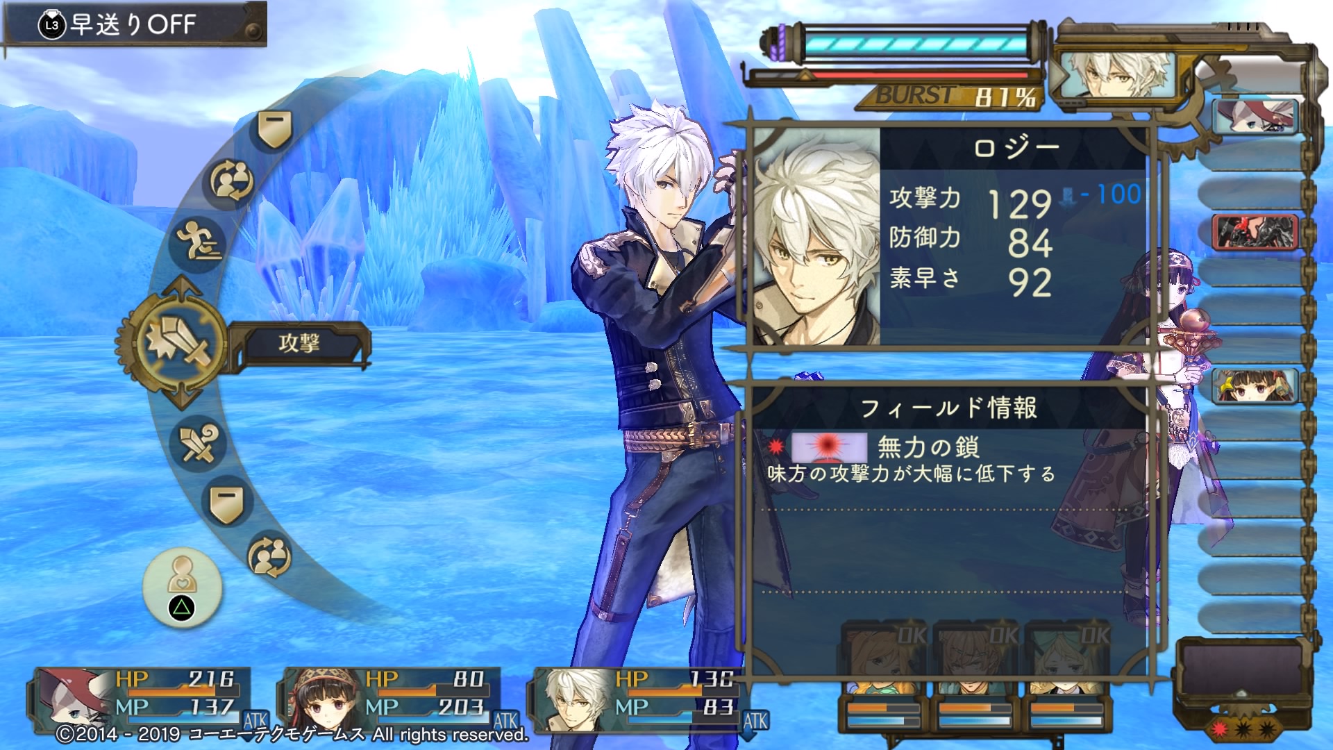 バーストモード、ヴァリアブルアタック、必殺技、フィールドバーストと、今作の戦闘はプレイヤー側に有利なシステムが豊富です