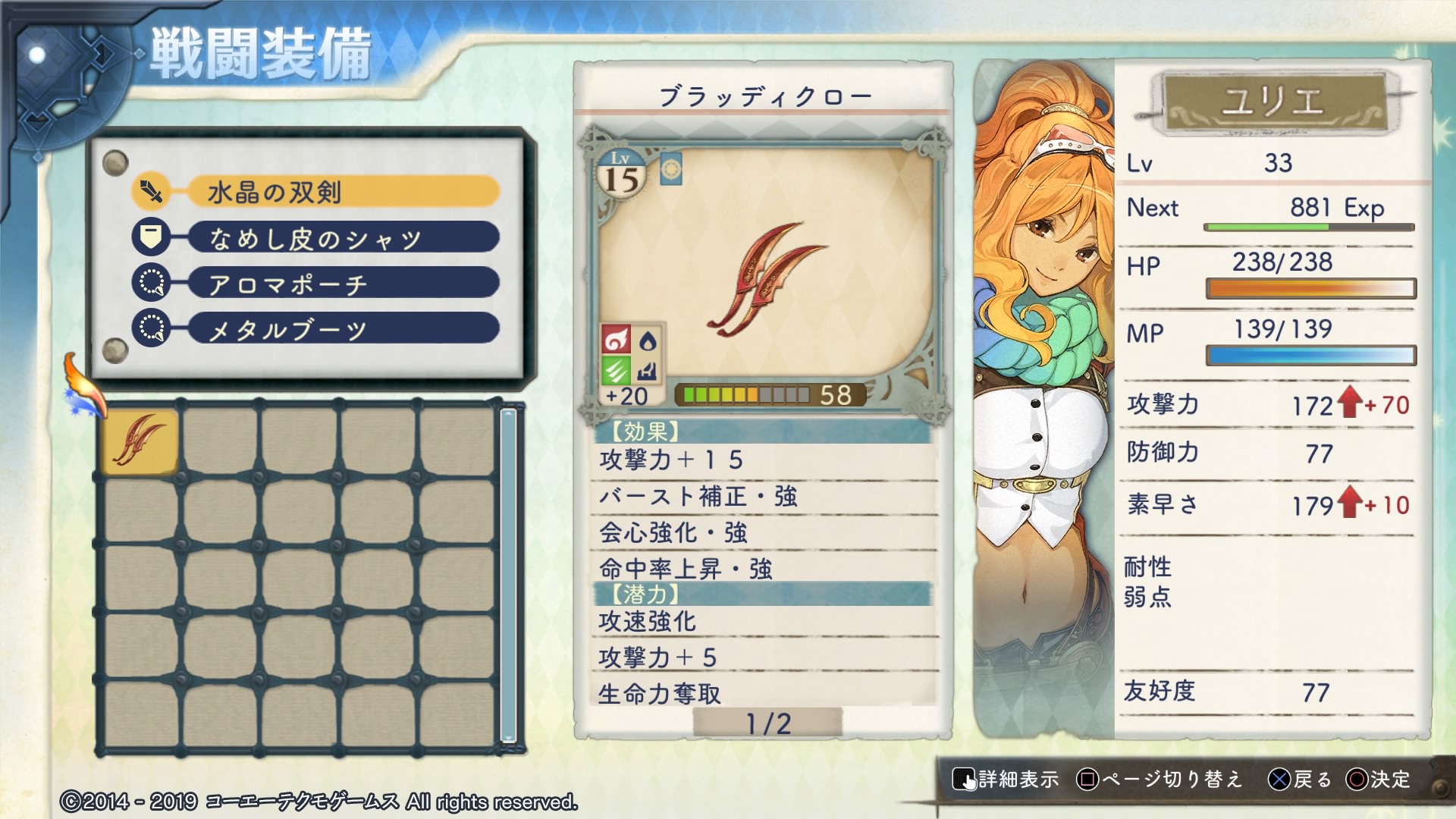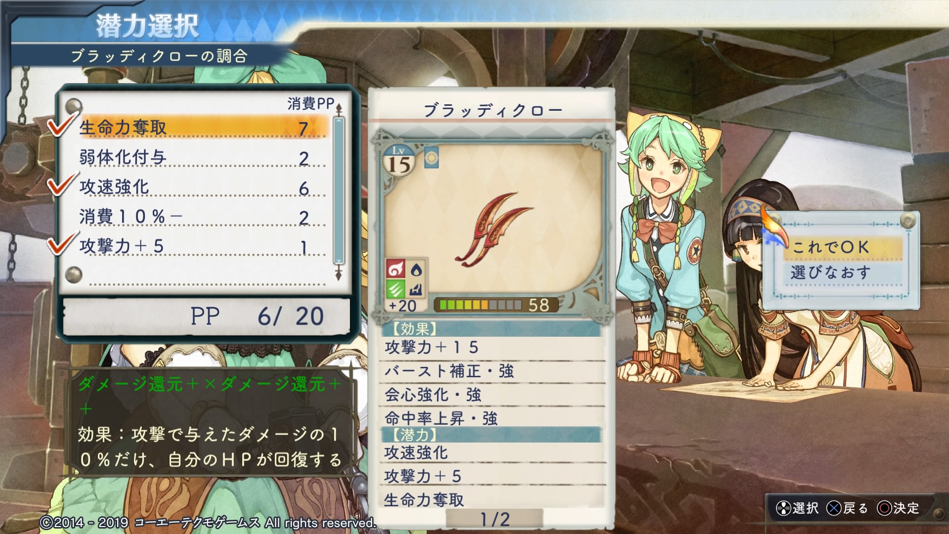 6章の自由時間中にミルカのアトリエに入り浸って武器の作りこみをやりました