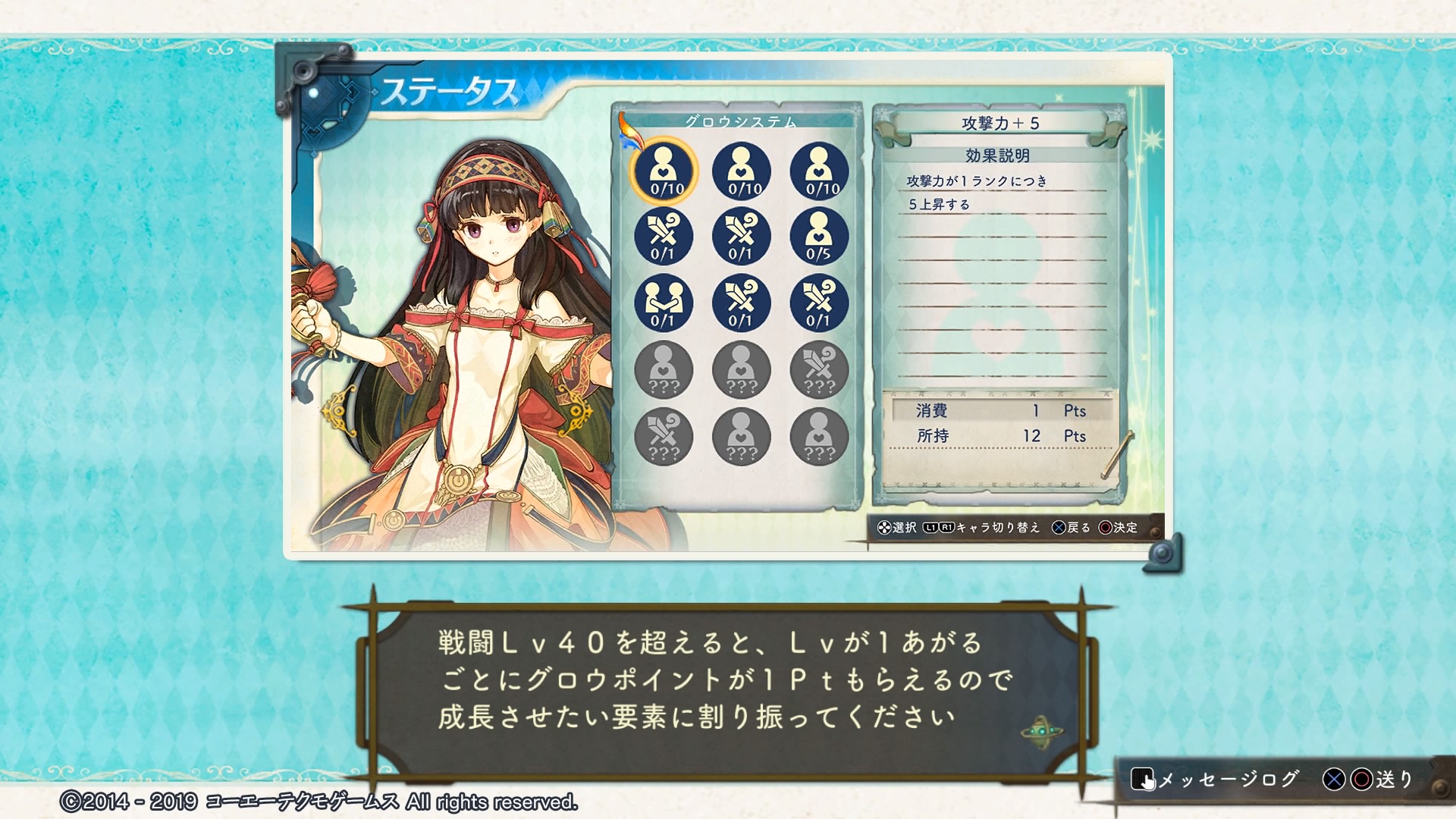 ここでLV上げしてキャラのLVが40に達したことで、グロウシステムが解放されます