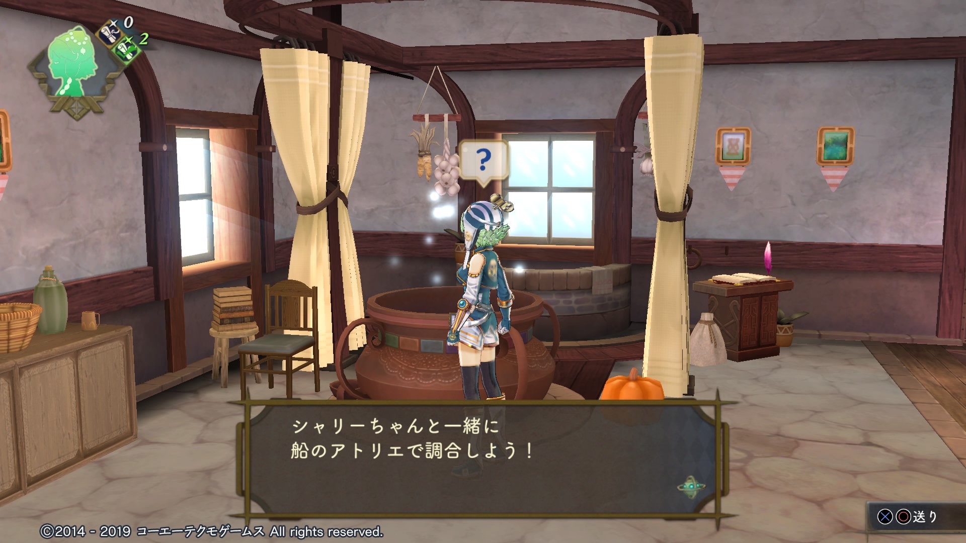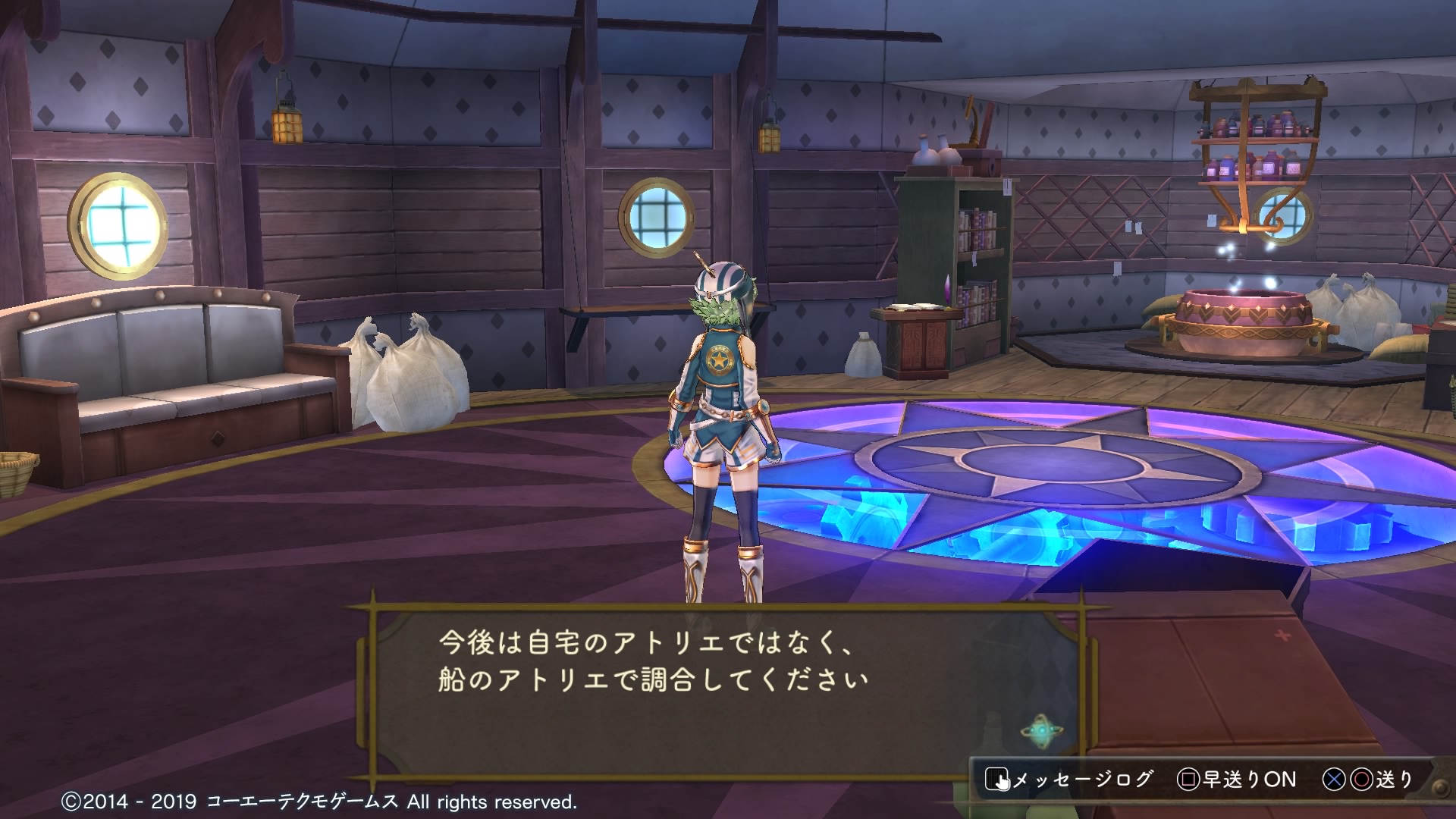 この後のシナリオでシャリーが仲違いするところでは、再び船が利用できなくなって自宅のアトリエを使うことになると思われます