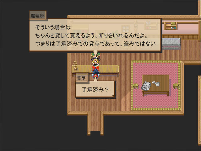 すると泥棒に関する話を聞けた。話を要約すると持っていったのは魔理沙ということで…まあいつも通りですね。