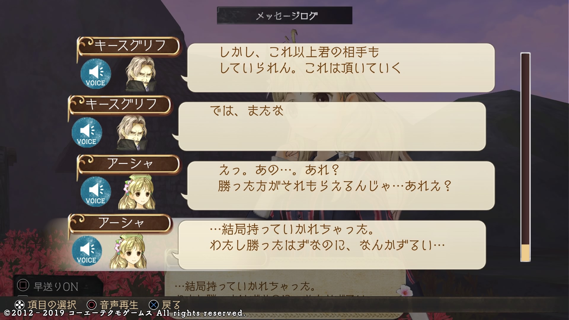 勝利時の会話ではなぜか最初に挑発したリンカさんが登場しないためアーシャ一人で倒したかのような内容に