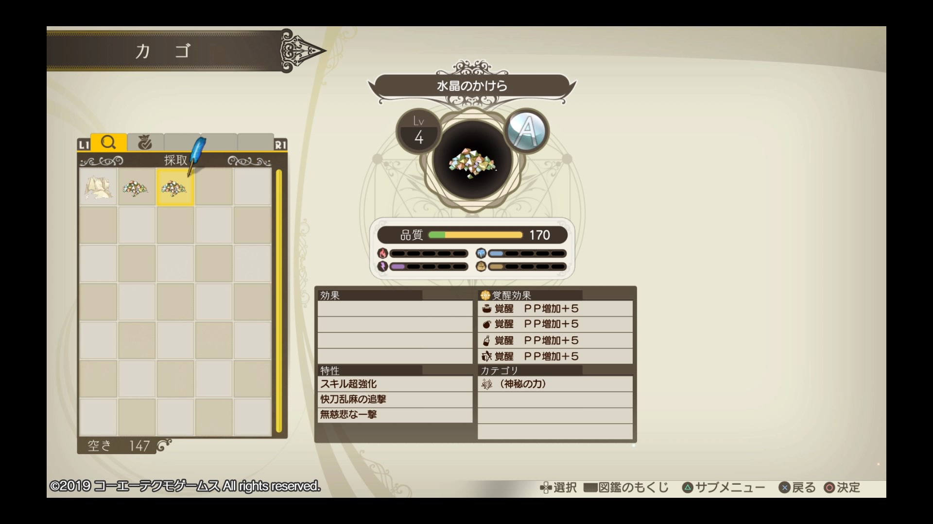 並行世界のフェルスガラクセンでは、採取できる素材の種類は現実と同じものの、超高品質で強力な特性がつくため、最終決戦の前にこれらの素材を使ってアイテムの作り込みをすると良さげ