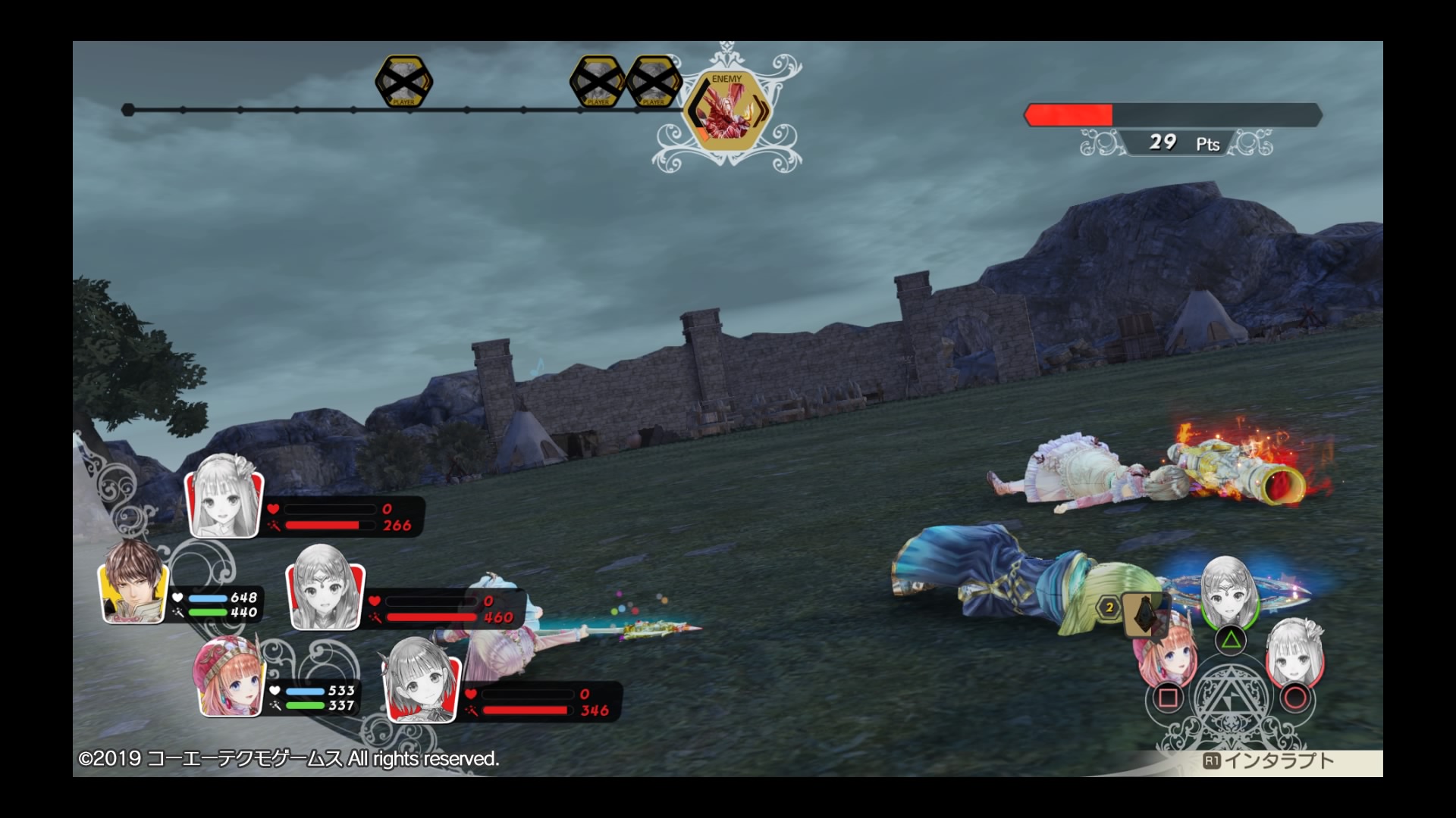 後衛にいたロロナがインタラプトでエリキシル剤をセットしてたので何とか立て直した後、ボスに各種デバフを入れてから反撃に転じ、辛くも勝利できました
