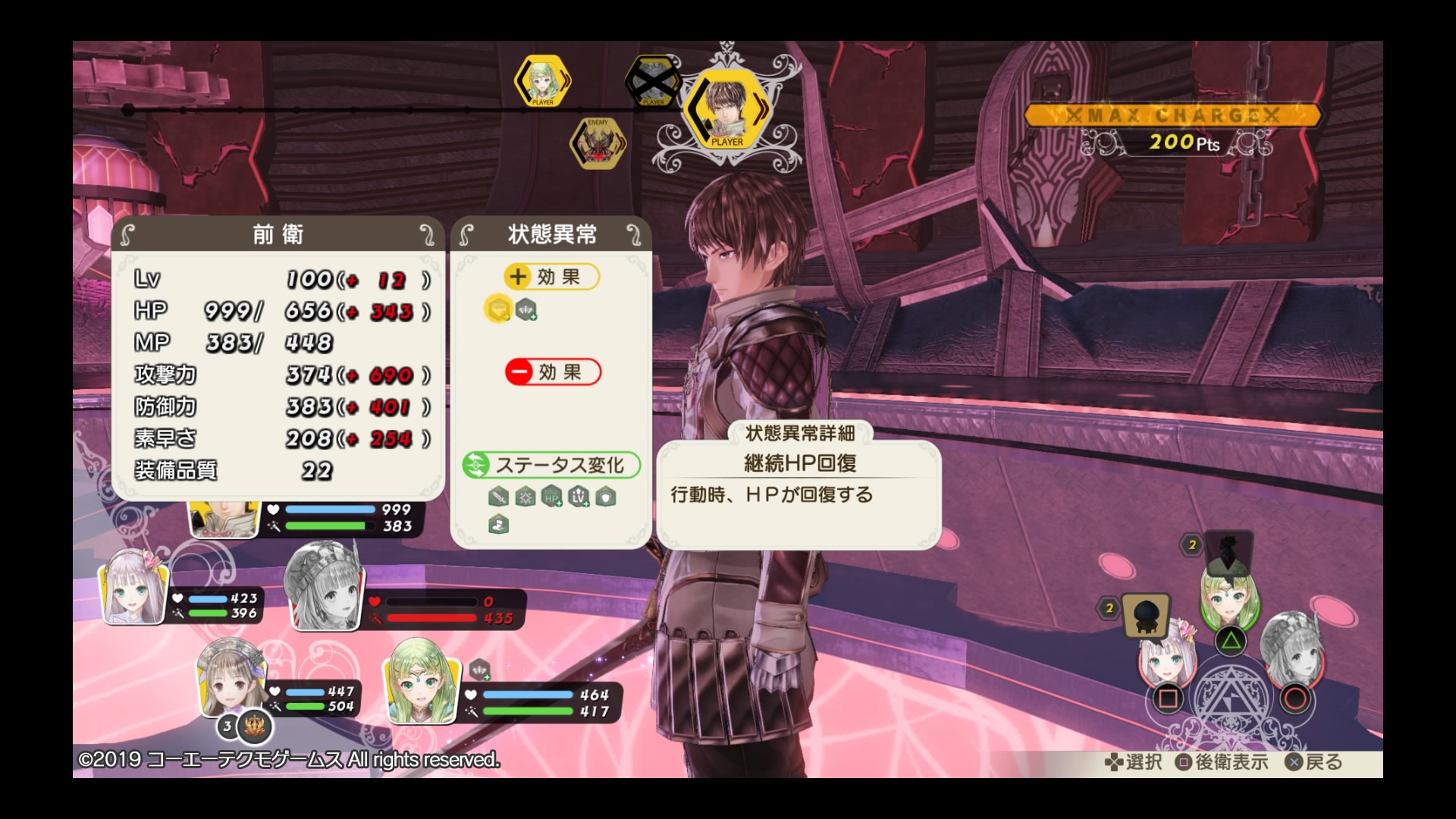 一つ前の準ラスボス戦では上手くいかなかったんですが、今回はラスボスの火力が上がっているため良い感じでロロナだけが連続で犠牲になってくれた(酷いw)ので、妙薬ドラッヘンで強化したステルクで必殺技を発動