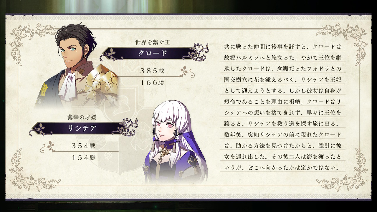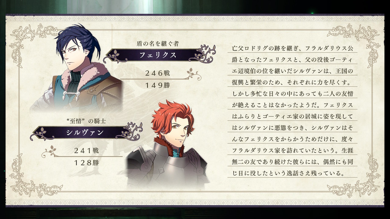 また、主人公ではないがフェリクスとシルヴァンのペアエンドが以前見たものと内容が異なっていることが明らかに!