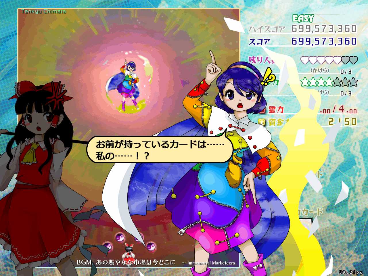 ノーマルでミスを連発してスペカをたくさん取り逃すような素人プレイでも、6面クリア時には15億点とかまで稼げました