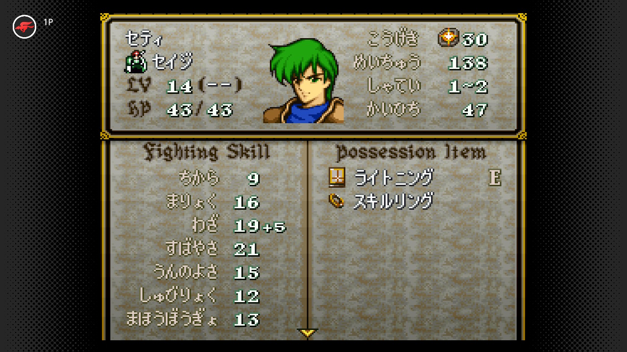 この章で仲間になるセティですが、今回は父親がノイッシュなので魔力の伸びには期待できず、前回のようにフォルセティもないので扱いに困るかと思われました