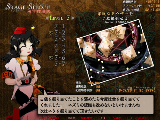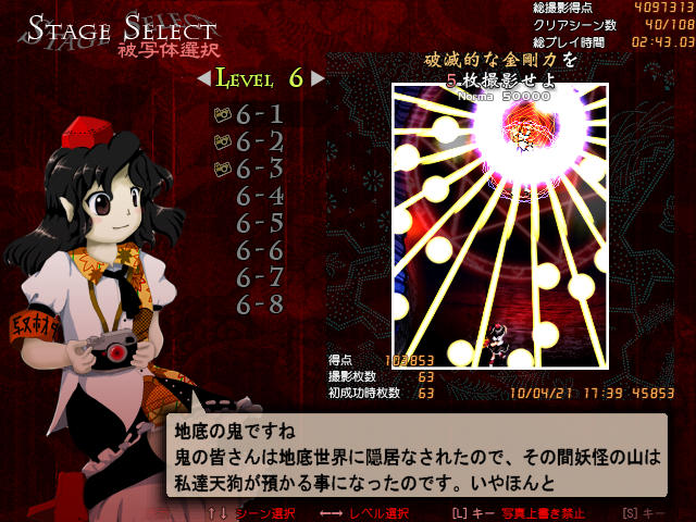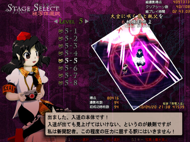 それにしても、文花帖では東方キャラのもう一つの二つ名がシーンのタイトルに出るので面白いですよね