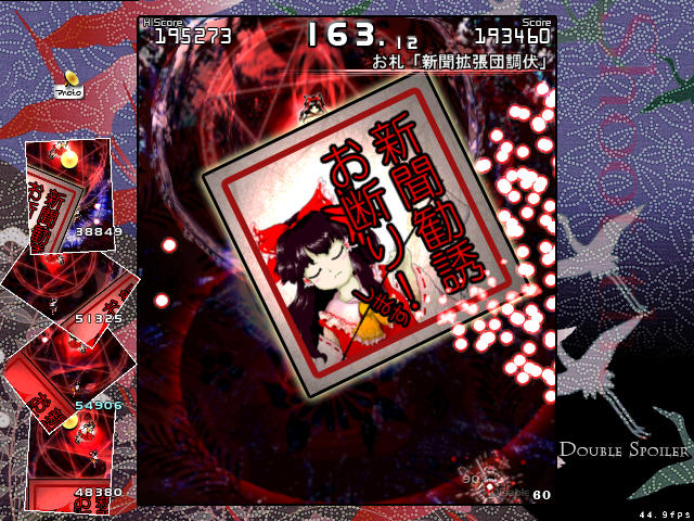 この弾幕は通常時、花の形をした弾幕が反時計回りに回転していて、霊夢本体からは札弾の弾列が飛んできます