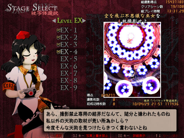 座布団は一定時間で高密度の弾幕に変化するので、その前にシャッターを切ると座布団ごと画面上の弾幕を一掃できます