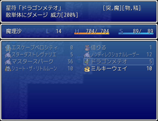 主人公サイドは通常攻撃にも物理属性が付与されており、例えば霊夢の武器・お祓い棒だと殴属性、魔理沙の武器・箒だと突属性になります。