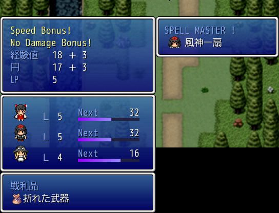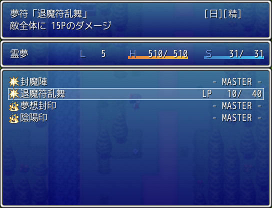 戦闘に勝利すると経験値やお金の他にLPという熟練度が得られ、LPがスペルカード毎に設定された値までたまると、そのスペルを習得したことになり、スペルカードを外しても使用可能になるわけです。