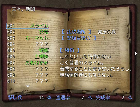 いわゆるモンスター図鑑というやつです。