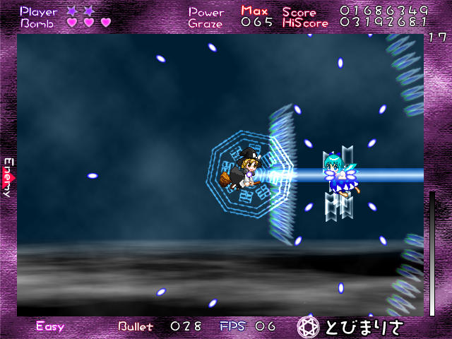 まあチルノなりに頑張ってるんだろうけど、これ原作の3ボスと比べればまだまだイージー程度だ