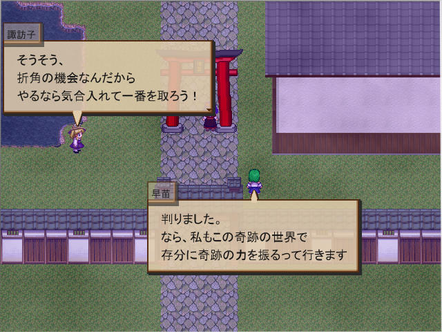 朝になると神社に早苗さんがやってくる。今度こそいいやつだと思ったら、博麗神社を山の上の神社に統合するよう持ちかけられる。それを断った霊夢は早苗さんに(ry