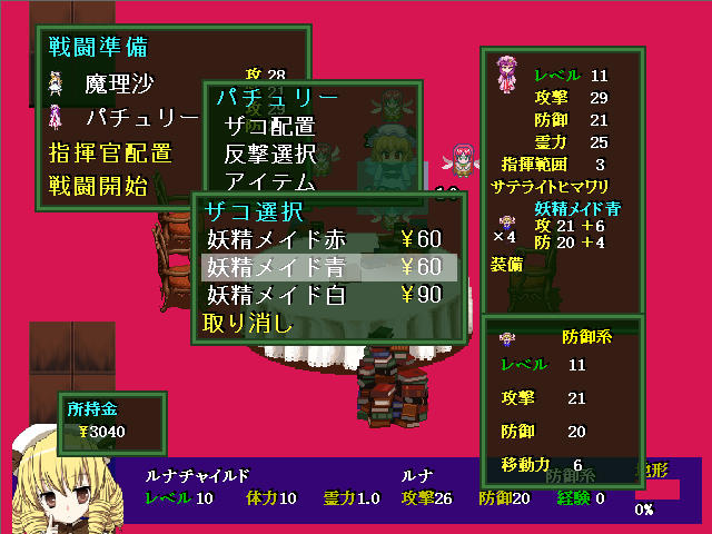 そのままでは返り討ちに遭ってしまいそうだが、4ターン目終了時に弓兵が美鈴の援軍で出現するので、放っておいてもザコは片付けてくれる