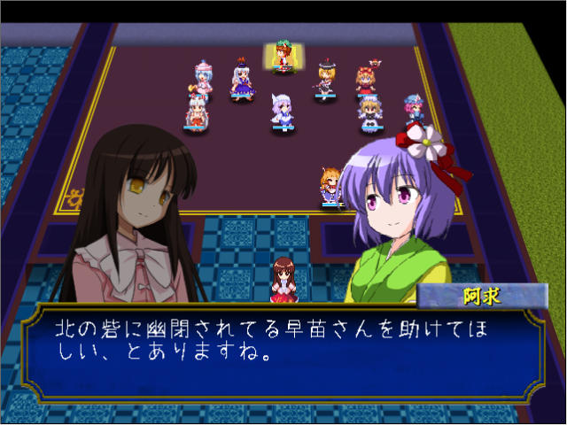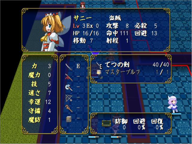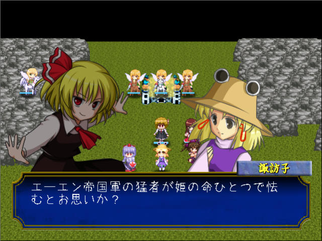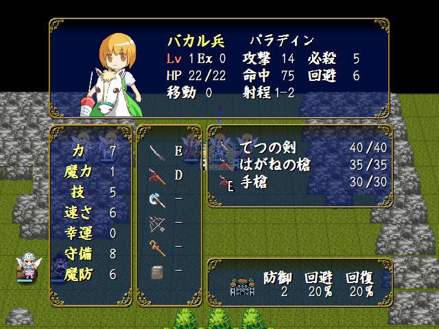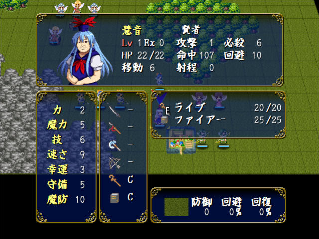 マップ左上にいる諏訪子はクラスがドラゴンナイト、椛とはたてはペガサスナイトなので、元キャラはそれぞれミネルバとパオラ、カチュア