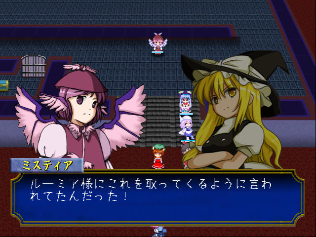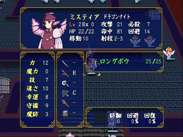 古めかしい遺跡でミスティアと遭遇 ルーミアの手下のようだドラゴンナイトの癖に弓が使えるという特殊なユニットだ