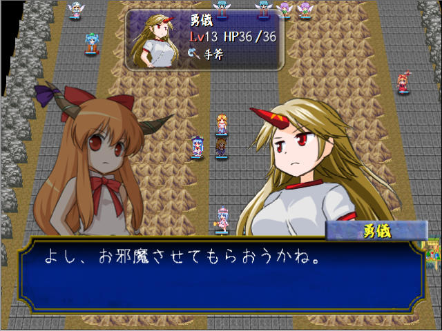 シューターは射程が10マスもある上守備が高いという難敵 ただし移動が出来ない敵軍に勇儀とにとりを発見 勇儀はすいかで仲間に出来るかも