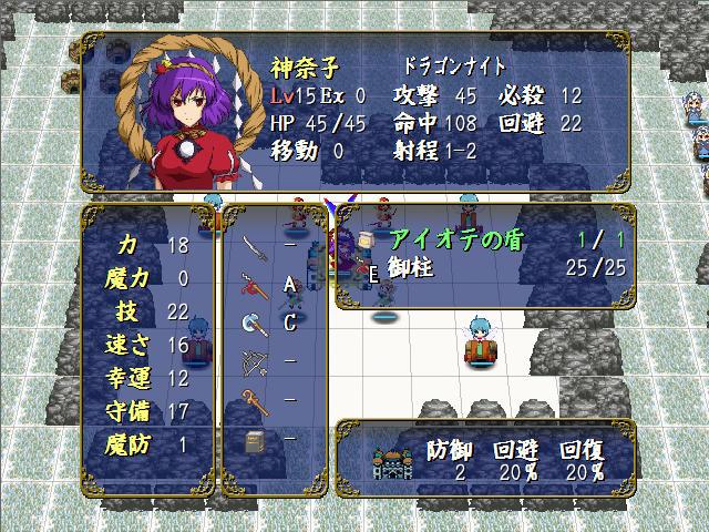 ここで注意すべきなのは、神奈子の攻撃が非常に強力なので、神奈子の攻撃を受けないためにこれらの手順を1ターンで済ませなければならない