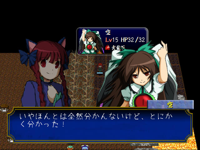 どちらも非常に攻撃力が高く、放っておくとこちらの行軍の大きな妨げとなるので、マップ右上の部隊ににとりを出撃させて、サンダーボルトで撃破しよう
