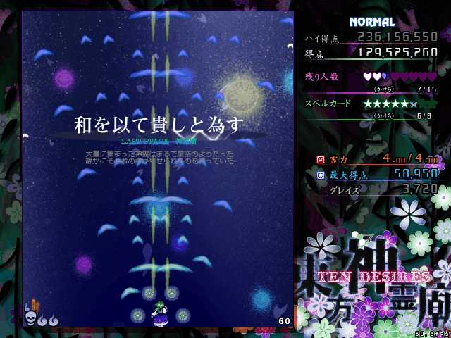 前回の続き…と言いたいところなんですが、実は霊夢での初見プレイは6面ボスの3枚目のスペカでゲームオーバーとなり、初見でノーコンクリアの夢はついえてしまいました(泣)