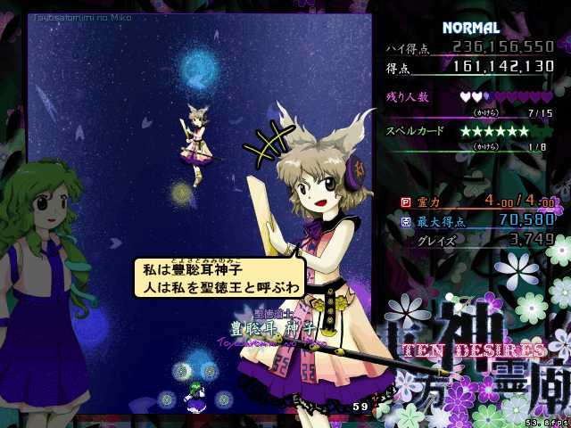 早速きました、スペルカード名も聖徳太子ネタです