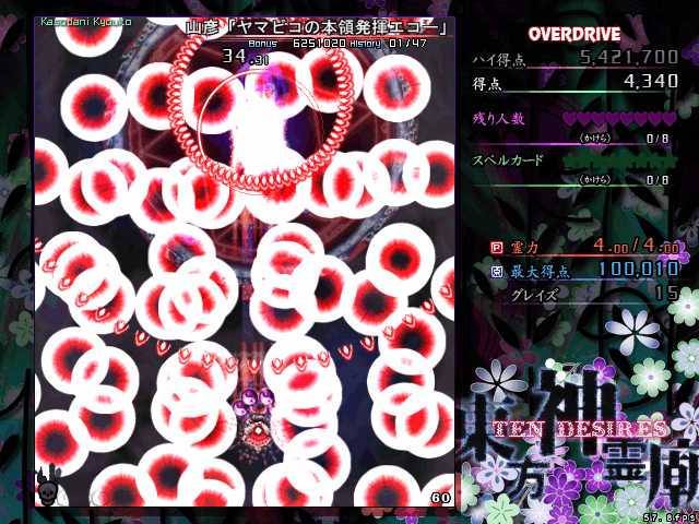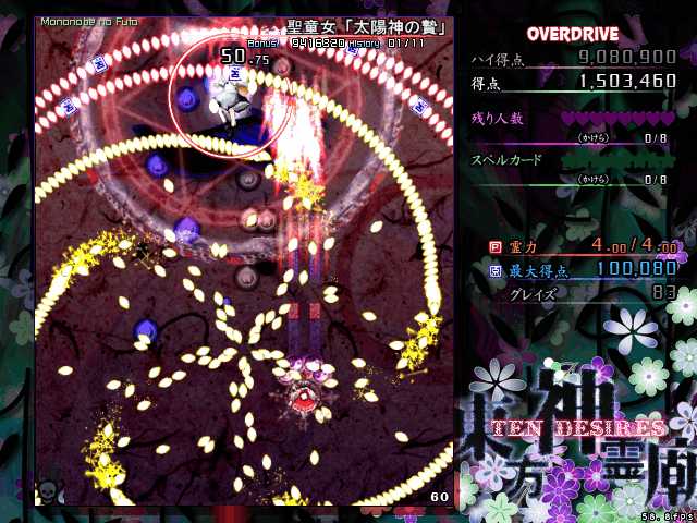 スペルプラクティスにルナティックのスペルカードが解放されたら、次はオーバードライブを開放してこれに挑戦