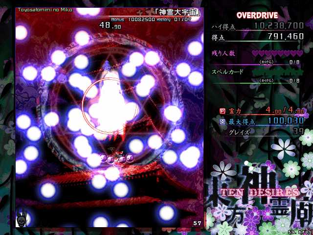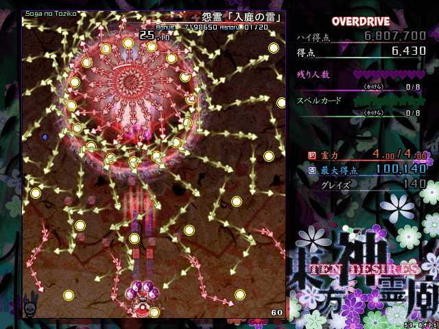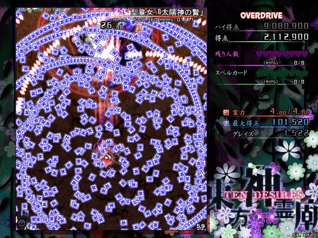 オーバードライブはこれ以上やっても進展なさそうだし、本編もルナティックまではやる気が起こらないので、神霊廟のプレイはこの辺で終了しようと思います