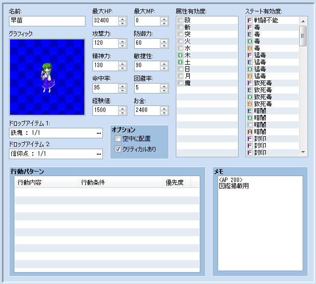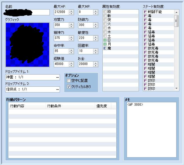 だからこれまで以上に敵キャラデータのステータスの設定が大切になります