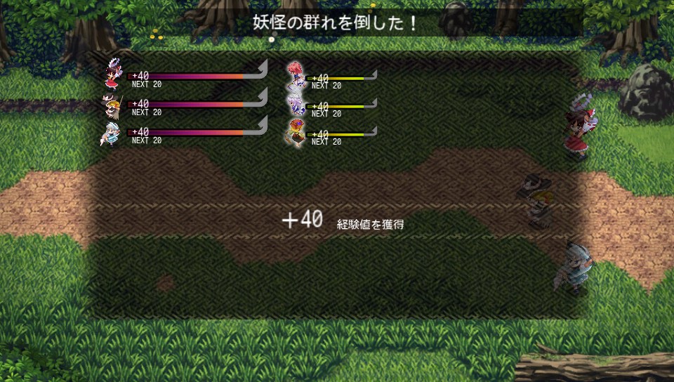 ただし取得経験値が100を超える敵や赤シンボルの強敵は、スペルカードも駆使しないと苦しい場面もあり、油断すると全滅することも