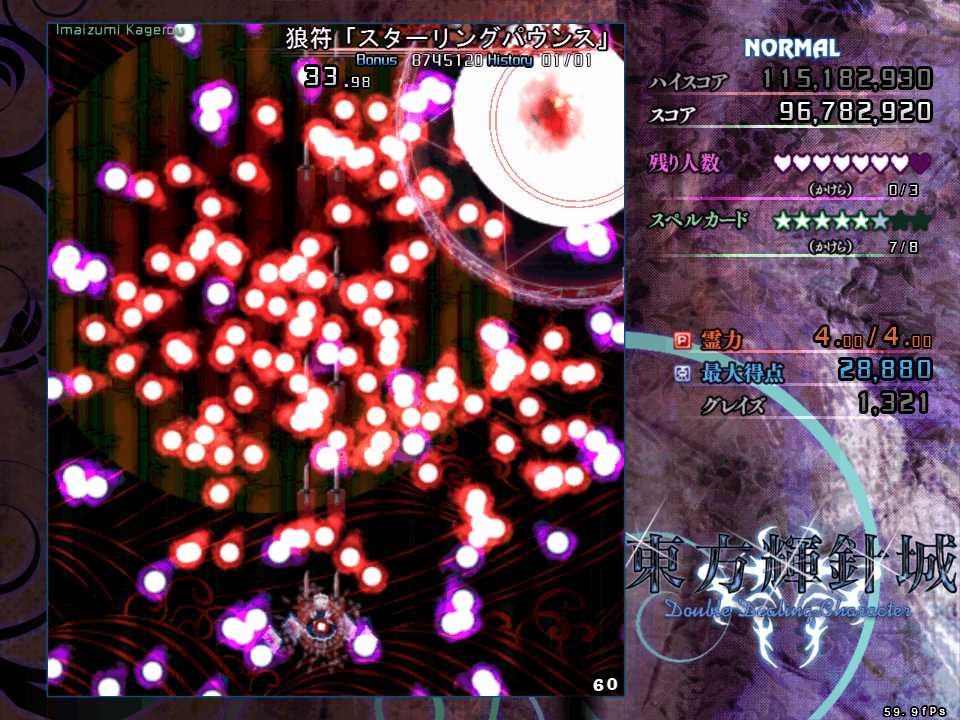 Ex3面はザコ敵の数が多く、群れの中に入るとどこに勇儀がいるのかわからなくなるが、ザコ敵が勇儀をある程度足止めしてくれる