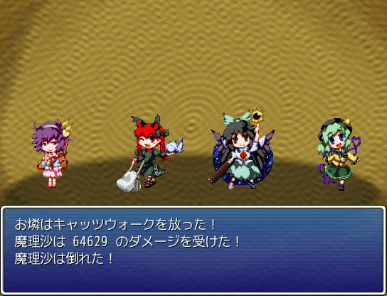 オート戦闘だと頭の悪い行動をしてすぐに死んでしまうんじゃないかという心配がありますが、はたてが戦闘で使用する技は全て消費MPが0なのでMP切れはしないし、威力も通常攻撃と大差ないので、オートで通常攻撃しか使ってくれなくてもさほど問題ありません